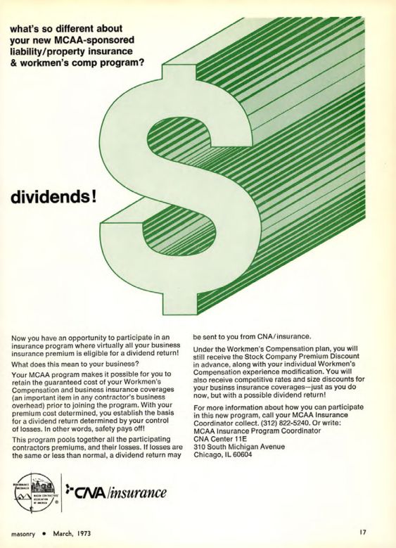 For more information about how you can participate in this new program, call your MCAA Insurance Coordinator collect. (312) 822-5240. Or write: MCAA Insurance Program Coordinator, CNA Center 11E, 310 South Michigan Avenue, Chicago, IL 60604.