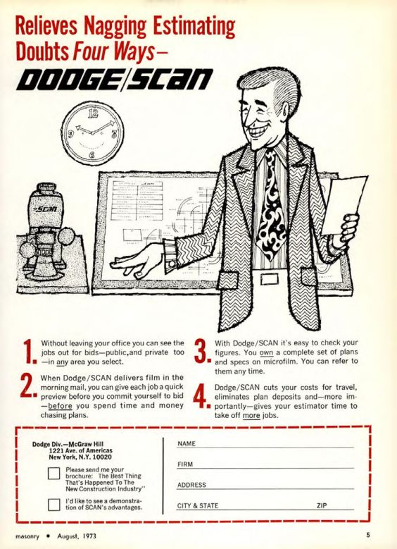 3. With Dodge/SCAN it's easy to check your figures. You own a complete set of plans and specs on microfilm. You can refer to them any time.
