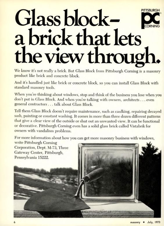 For more information about how you can get more masonry business with windows, write Pittsburgh Corning Corporation, Dept. M-73, Three Gateway Center, Pittsburgh, Pennsylvania 15222.
