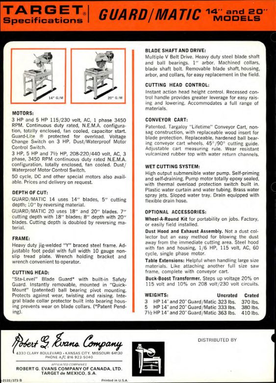 3 HP 14" and 20" Guard/Matic 323 lbs. 370 lbs.