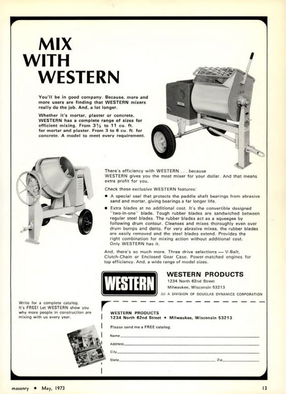 Write for a complete catalog. It's FREE! Let WESTERN show you why more people in construction are mixing with us every year.