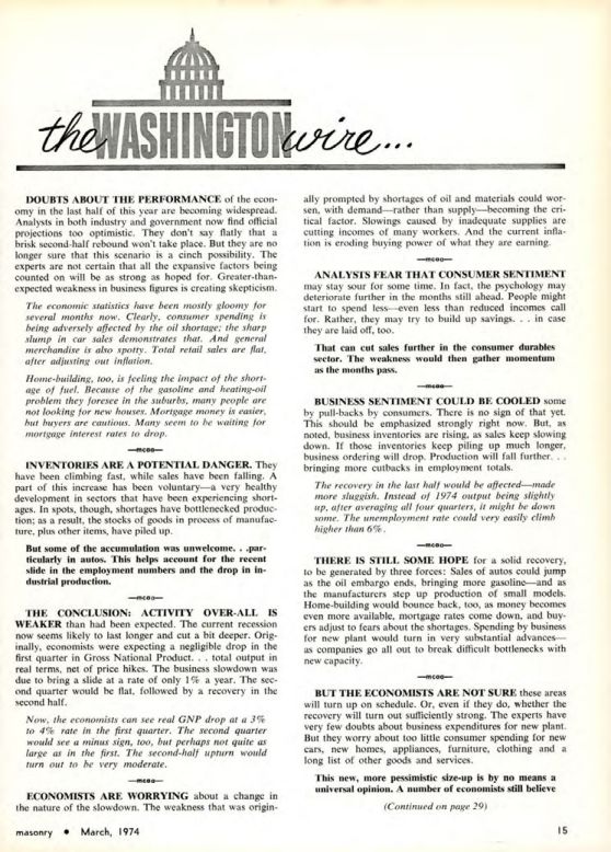 THERE IS STILL SOME HOPE for a solid recovery, to be generated by three forces: Sales of autos could jump as the oil embargo ends, bringing more gasoline and as the manufacturers step up production of small models. Home-building would bounce back, too, as money becomes even more available, mortgage rates come down, and buyers adjust to fears about the shortages. Spending by business for new plant would turn in very substantial advances- as companies go all out to break difficult bottlenecks with new capacity.