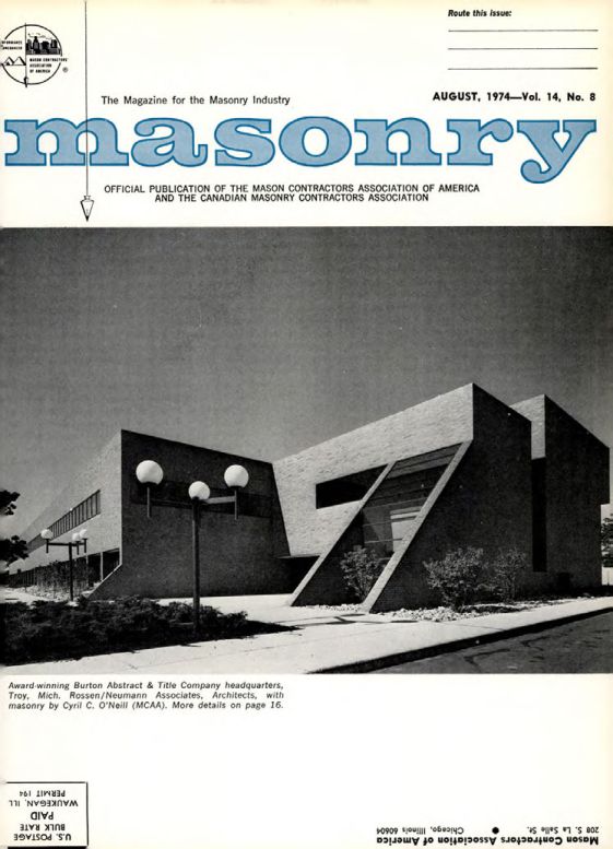 Masonry Magazine August 1974 Page. 1