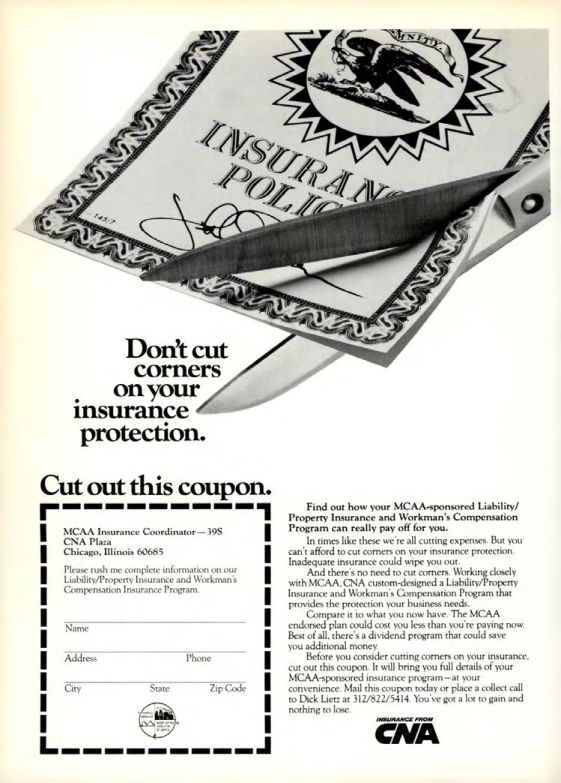 Before you consider cutting corners on your insurance, cut out this coupon. It will bring you full details of your MCAA-sponsored insurance program-at your convenience. Mail this coupon today or place a collect call to Dick Lietz at 312/822/5414. You've got a lot to gain and nothing to lose.