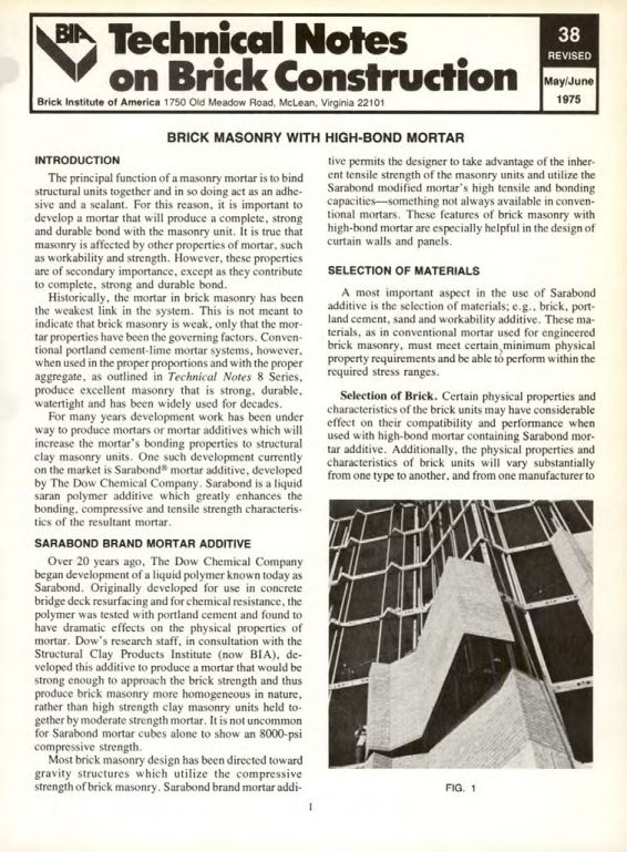 For many years development work has been under way to produce mortars or mortar additives which will increase the mortar's bonding properties to structural clay masonry units. One such development currently on the market is Sarabond mortar additive, developed by The Dow Chemical Company. Sarabond is a liquid saran polymer additive which greatly enhances the bonding, compressive and tensile strength characteristics of the resultant mortar.