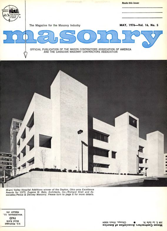 Miami Valley Hospital Additions winner of the Dayton, Ohio area Excellence Awards for 1975. Eugene W. Betz, Architects, Inc./Richard Shell and Associates/Pence & Denney Masonry. Please turn to page 8 for more details.