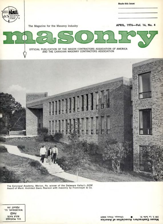 The Episcopal Academy, Merion, Pa. winner of the Delaware Valley's AXIM Award of Merit. Architect Davis Pearson with masonry by Frommeyer & Co.
