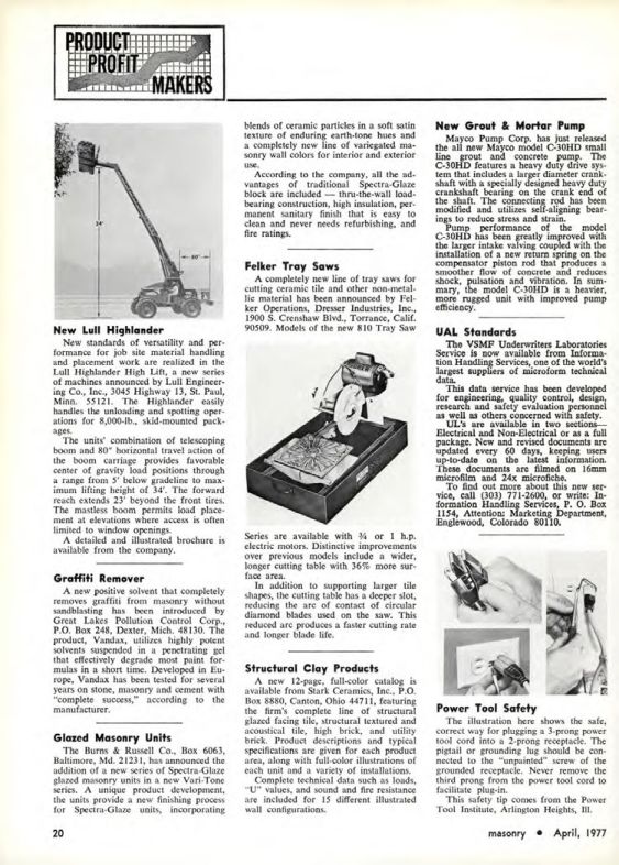 The Burns & Russell Co., Box 6063, Baltimore, Md. 21231, has announced the addition of a new series of Spectra-Glaze glazed masonry units in a new Vari-Tone series. A unique product development, the units provide a new finishing process for Spectra-Glaze units, incorporating blends of ceramic particles in a soft satin texture of enduring earth-tone hues and a completely new line of variegated masonry wall colors for interior and exterior use.