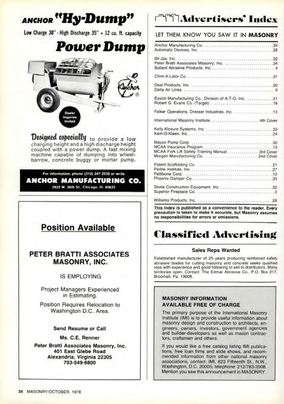 If you would like a free catalog listing IMI publications, free loan films and slide shows, and recommended information from other national masonry associations, contact: IMI, 823 Fifteenth St., N.W., Washington, D.C. 20005, telephone: 212/783-3908. Mention you saw this announcement in MASONRY.