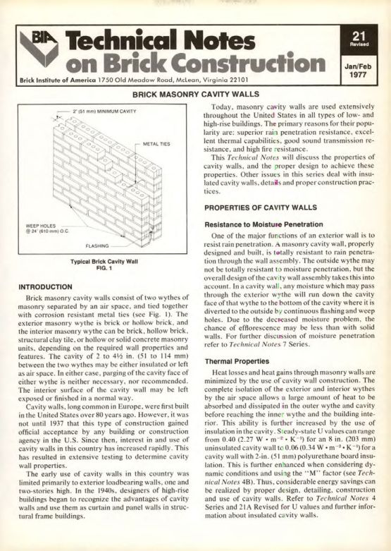 This Technical Notes will discuss the properties of cavity walls, and the proper design to achieve these properties. Other issues in this series deal with insulated cavity walls, details and proper construction practices.