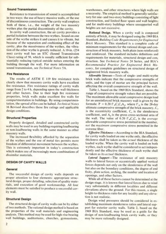 Rational Design. When a cavity wall is composed entirely of brick, it may be designed using the 1969 BIA Standard, Building Code Requirements for Engineered Brick Masonry. This standard is a complete code of minimum requirements for the rational design and construction of brick masonry, both plain (non-reinforced) and reinforced. The standard includes definitions and requirements for materials, structural design and construction. See Technical Notes 24 Series, and BIA's Recommended Practice for Engineered Brick Masonry, for complete guidelines on structural design of engineered brick masonry walls.