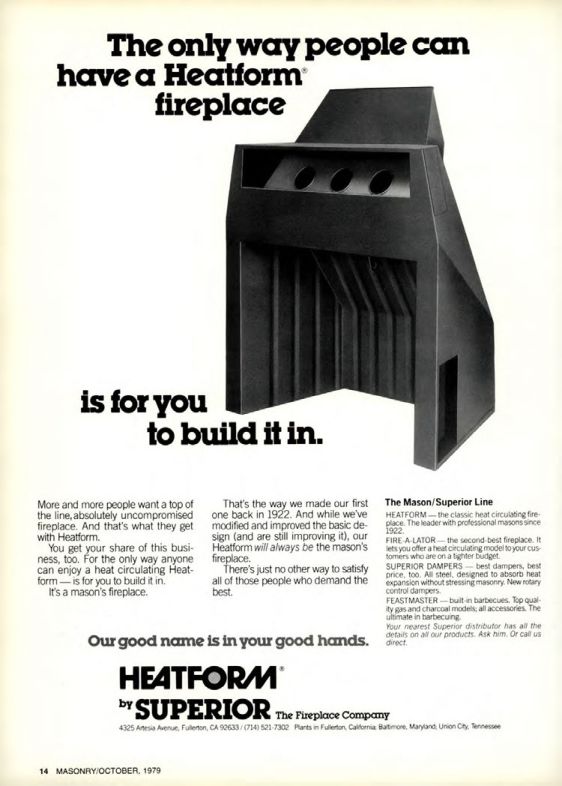 That's the way we made our first one back in 1922. And while we've modified and improved the basic design (and are still improving it), our Heatform will always be the mason's fireplace.