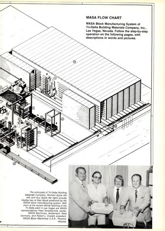 MASA Block Manufacturing System of Tri-Delta Building Materials Company, Inc., Las Vegas, Nevada. Follow the step-by-step operation on the following pages, with descriptions in words and pictures.