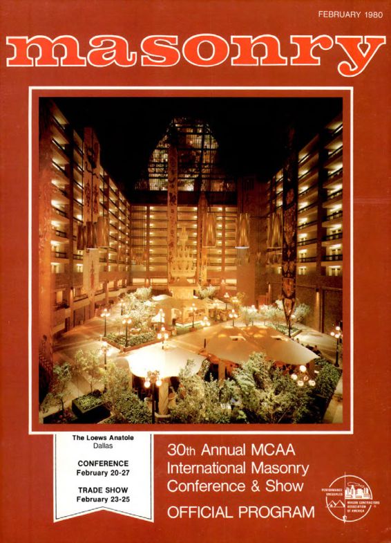 Masonry Magazine February 1980 Page. 1 Masonry Magazine February 1980 Page. 1 FEBRUARY 1980masonryThe Loews AnatoleDallasCONFERENCEFebruary 20-27TRADE SHOWFebruary 23-2530th Annual MCAAInternational MasonryConference & ShowPENGAMANCIOFFICIAL PROGRAMMASON CONTRAASSOCIATION
