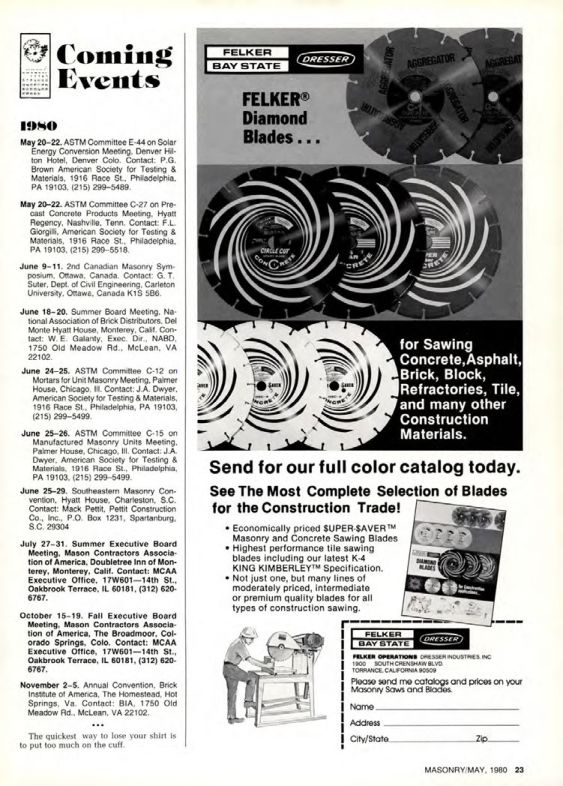 June 9-11. 2nd Canadian Masonry Symposium, Ottawa, Canada. Contact: G. T. Suter, Dept. of Civil Engineering, Carleton University, Ottawa, Canada K1S 586.
