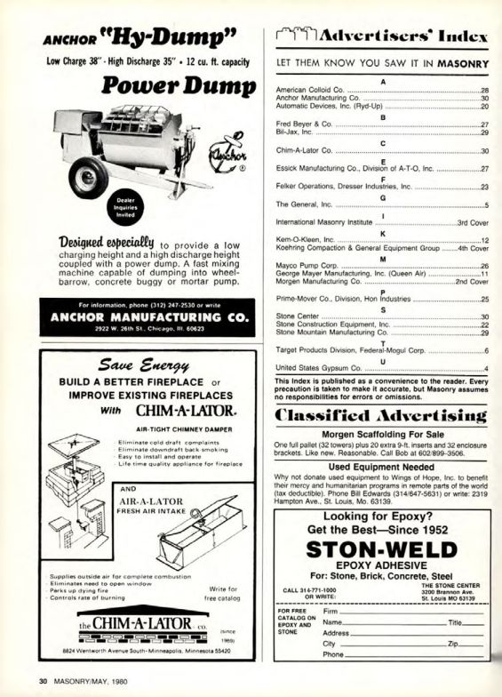 This Index is published as a convenience to the reader. Every precaution is taken to make it accurate, but Masonry assumes no responsibilities for errors or omissions.