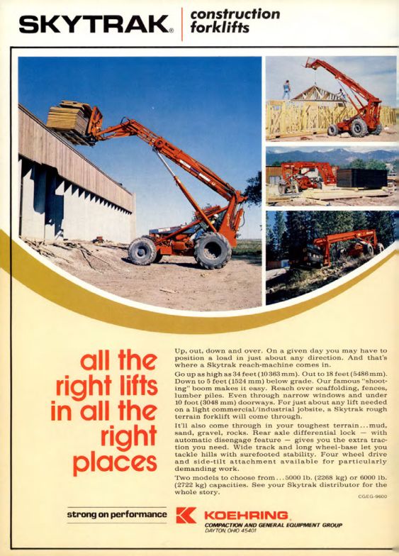 Two models to choose from... 5000 lb. (2268 kg) or 6000 lb. (2722 kg) capacities. See your Skytrak distributor for the whole story.