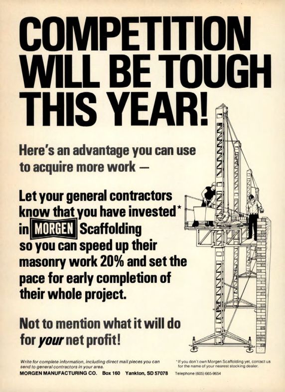 Here's an advantage you can use to acquire more work. Let your general contractors know that you have invested in MORGEN Scaffolding so you can speed up their masonry work 20% and set the pace for early completion of their whole project.