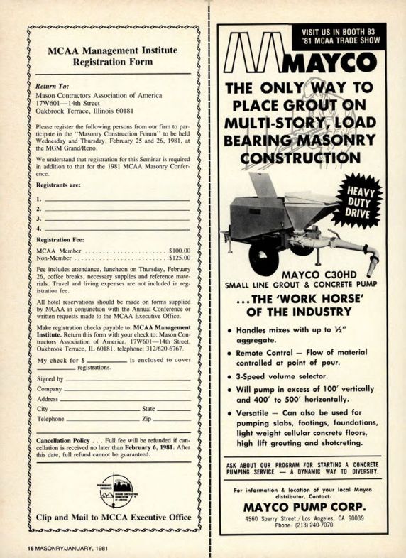 We understand that registration for this Seminar is required in addition to that for the 1981 MCAA Masonry Conference.