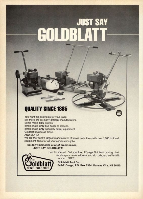 You want the best tools for your trade. But there are so many different manufacturers. Some make only trowels, others make only bull floats or screeds, others make only specialty power equipment. Goldblatt makes all these, AND MORE!