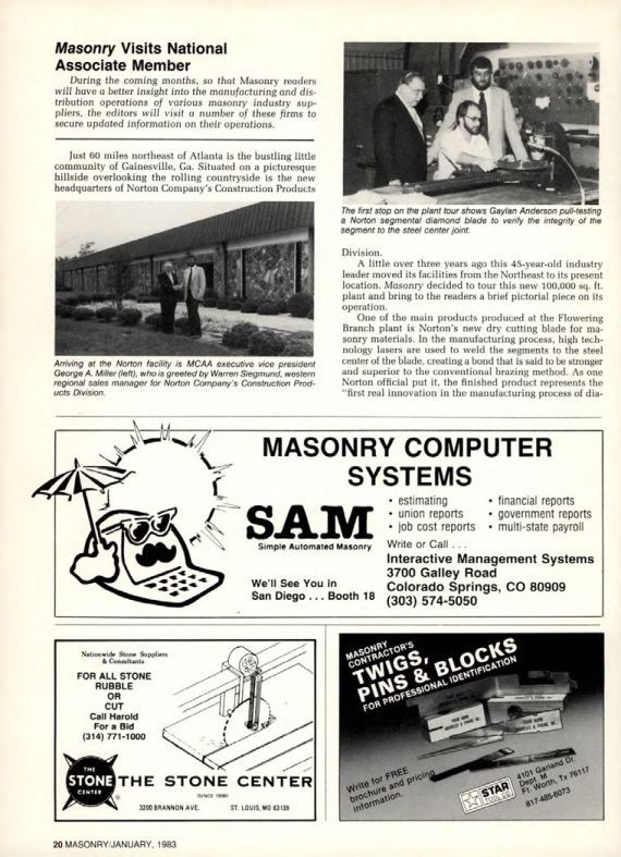 During the coming months, so that Masonry readers will have a better insight into the manufacturing and distribution operations of various masonry industry suppliers, the editors will visit a number of these firms to secure updated information on their operations.