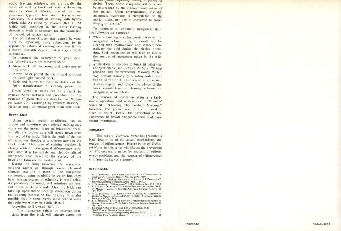5. W. E. Brownell, J. L. Kenna, and P. P. Wilko. Jr., "Staining of Mortar by Manganese Colored Brick", Bulletin, American Ceramic Society, 45 (3), 1966.