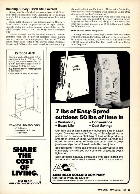 Our little bag of Easy-Spred only outweighs lime in advantages. One easy-to-handle 7 lb bag of Easy-Spred mortar plasticizer outworks a 50 lb bag of lime while producing smoother, creamier, more workable mortar. Spreads like butter for easy tooling of joints and better flow to cross joints-and you won't have to re-butter head joints.