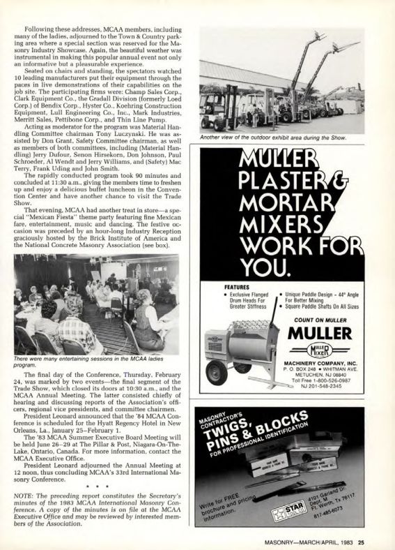 NOTE: The preceding report constitutes the Secretary's minutes of the 1983 MCAA International Masonry Conference. A copy of the minutes is on file at the MCAA Executive Office and may be reviewed by interested members of the Association.