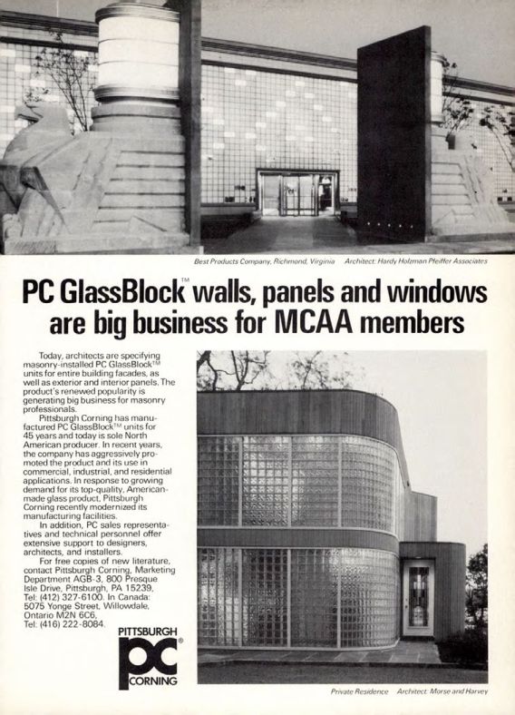 For free copies of new literature, contact Pittsburgh Corning, Marketing Department AGB-3, 800 Presque Isle Drive, Pittsburgh, PA 15239, Tel: (412) 327-6100. In Canada: 5075 Yonge Street, Willowdale, Ontario M2N 6C6, Tel: (416) 222-8084.