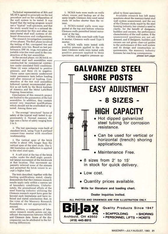 Available research has left many questions about the masonry/metal stud wall system unanswered, and the use of the Clemson study report by the steel framing industry has created a need to clarify, for the benefit of designers, builders and owners, the performance characteristics of the wall system. If the unanswered questions are not addressed, and if designers, builders and owners are not given clear-cut guides to the performance of this wall system and its design and construction requirements, the masonry industry foresees far-reaching consequences.