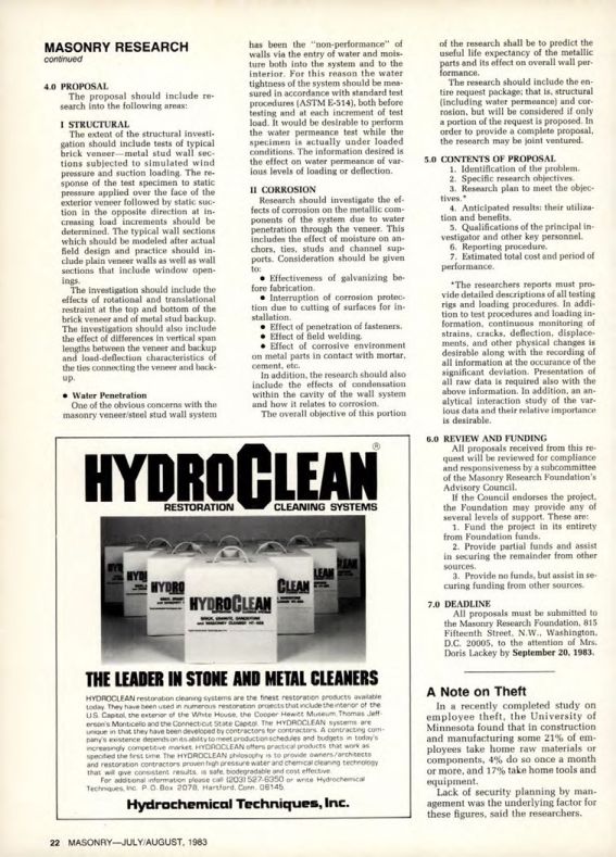 All proposals must be submitted to the Masonry Research Foundation, 815 Fifteenth Street, N.W., Washington. D.C. 20005, to the attention of Mrs. Doris Lackey by September 20, 1983.