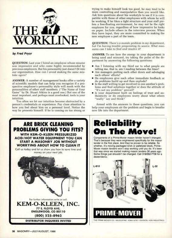 Components of a Prime-Mover mason tender haven't changed. That's because they were engineered specifically for the mason tender in the first place. And they've proven to be reliable. So whether, it's moving packaged brick or palletized block, Prime-Mover mason tenders won't stop working until you do. It's been that way since we started making mason tenders 30 years ago. Some things just shouldn't be changed. Call 319/262-7738 for a dealer/demo.