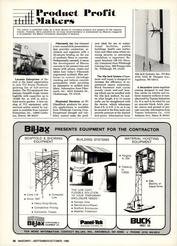 This column is published solely as a news service on innovative products and systems for the masonry industry. However, items published do not imply recommendation or endorsement by Masonry magazine or its publisher, the Mason Contractors Association of America.