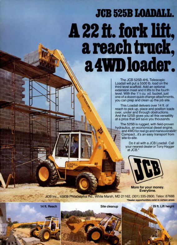 JCB Inc., 10939 Philadelphia Rd., White Marsh, MD 21162, (301) 335-2800, Telex: 87688