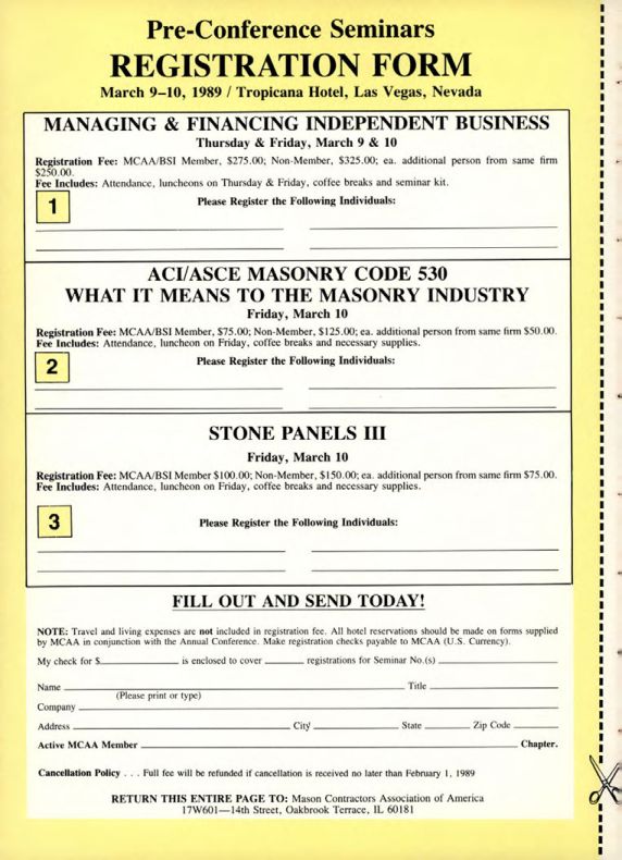 Cancellation Policy... Full fee will be refunded if cancellation is received no later than February 1, 1989