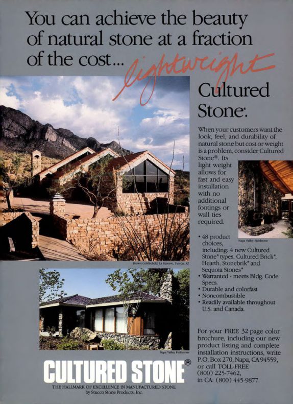 • 48 product choices, including: 4 new Cultured Stone types, Cultured Brick", Hearth, Stonebrik* and Sequoia Stones