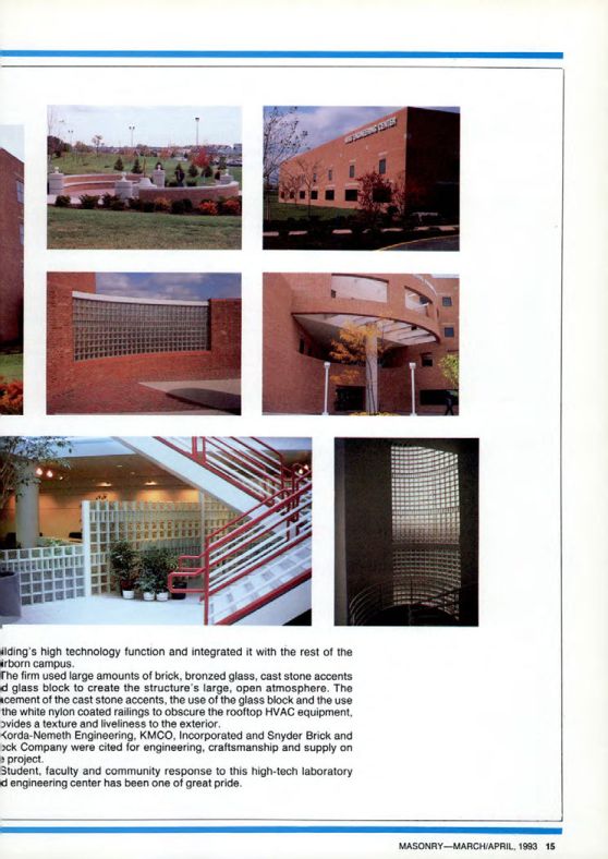 Korda-Nemeth Engineering, KMCO, Incorporated and Snyder Brick and Block Company were cited for engineering, craftsmanship and supply on the project.