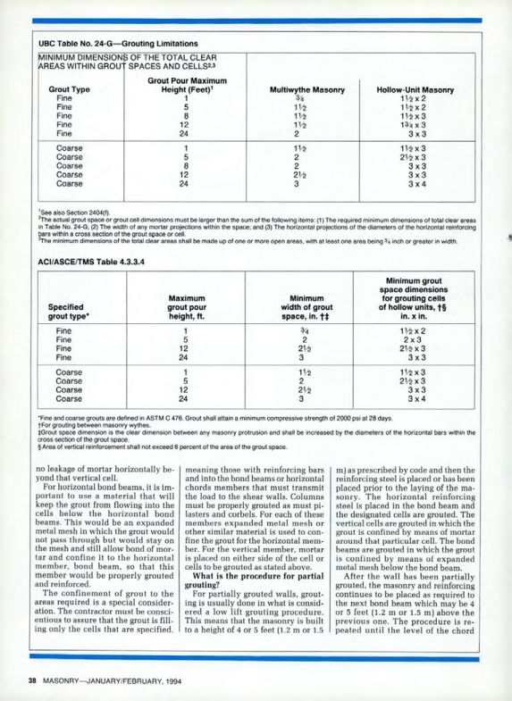 UBC Table No. 24-G-Grouting Limitations