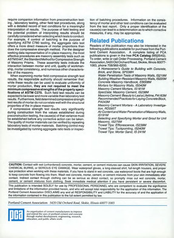 Readers of this publication may also be interested in the following publications available for purchase from the Portland Cement Association. A complete listing of PCA publications is given in the free PCA Catalog (MS254G). To order, write or call Order Processing, Portland Cement Association, 5420 Old Orchard Road, Skokie, Illinois 60077-1083, phone 708/966-6200.