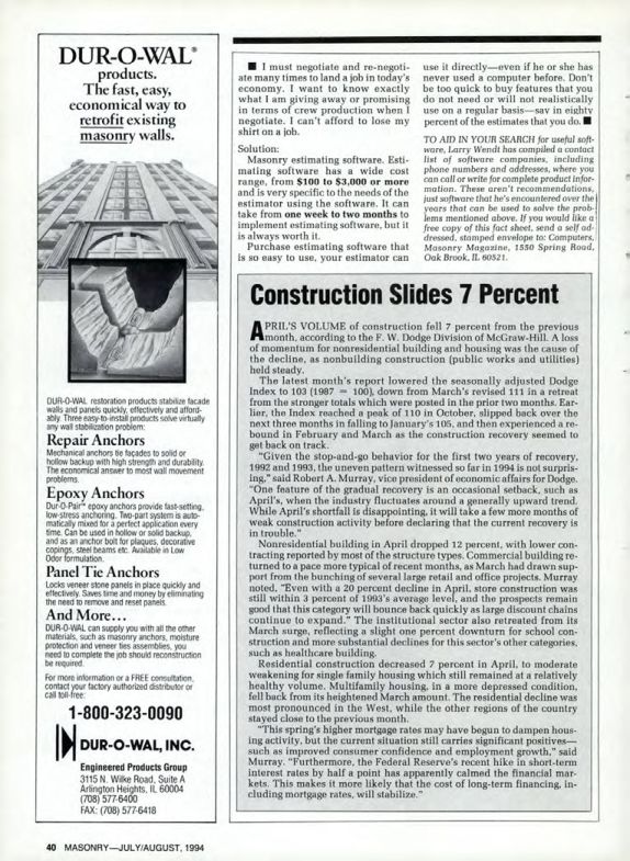 TO AID IN YOUR SEARCH for useful software, Larry Wendt has compiled a contact list of software companies, including phone numbers and addresses, where you can call or write for complete product information. These aren't recommendations, just software that he's encountered over the years that can be used to solve the problems mentioned above. If you would like a free copy of this fact sheet, send a self addressed, stamped envelope to: Computers. Masonry Magazine, 1550 Spring Road, Oak Brook, IL 60521.