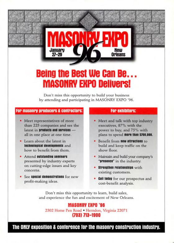 Don't miss this opportunity to build your business by attending and participating in MASONRY EXPO '96.