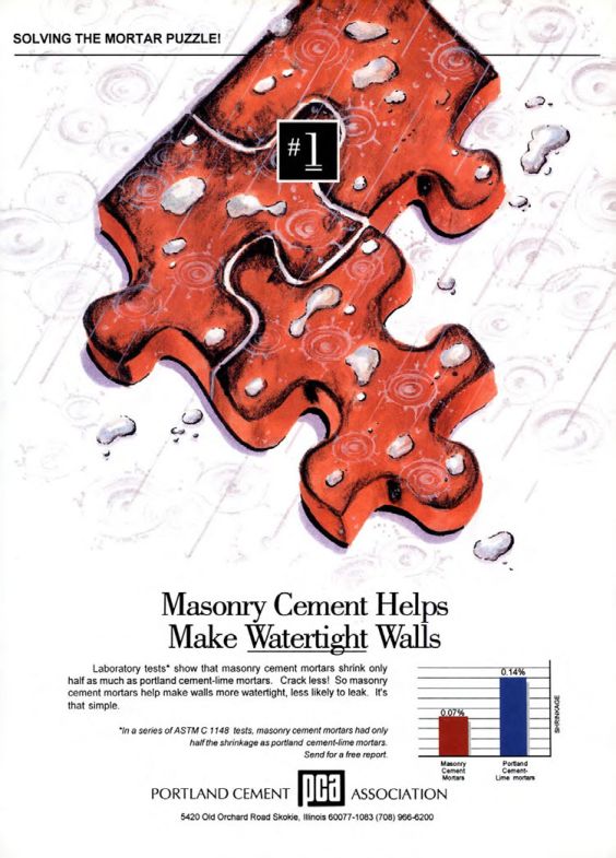 Laboratory tests show that masonry cement mortars shrink only half as much as portland cement-lime mortars. Crack less! So masonry cement mortars help make walls more watertight, less likely to leak. It's that simple.