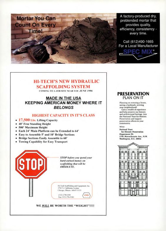 HI-TECH'S NEW HYDRAULIC SCAFFOLDING SYSTEM COMING TO A JOB SITE NEAR YOU JUNE 1996