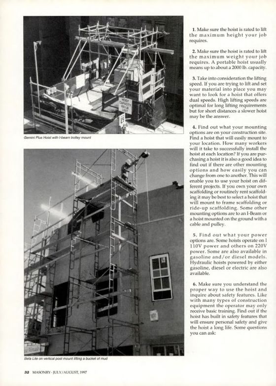 6. Make sure you understand the proper way to use the hoist and inquire about safety features. Like with many types of construction equipment the operator may only receive basic training. Find out if the hoist has built in safety features that will ensure personal safety and give the hoist a long life. Some questions you can ask: