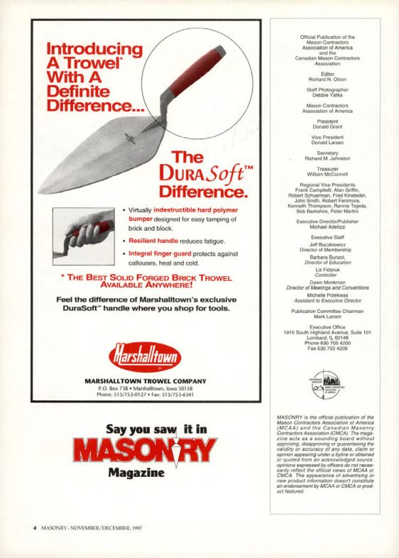 4 MASONRY-NOVEMBER/DECEMBER, 1997