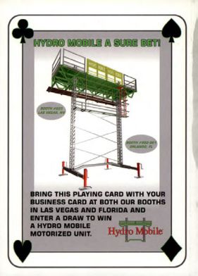 Masonry Magazine February 1999 Page. 4 Masonry Magazine February 1999 Page. 4 HYDRO MOBILE A SURE BET!BOOTH PRESLAB VEGAR NYBring this playing card with your business card at both our booths in Las Vegas and Florida and enter a draw to win a Hydro Mobile motorized unit.
