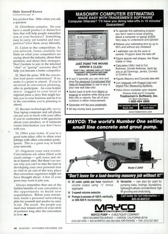 MASONRY COMPUTER ESTIMATING MADE EASY WITH TRADESMEN'S SOFTWARE
