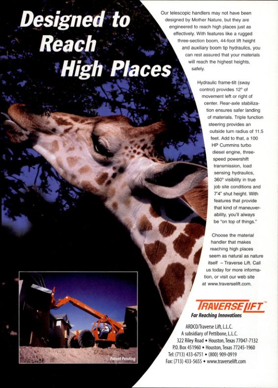 Choose the material handler that makes reaching high places seem as natural as nature itself Traverse Lift. Call us today for more information, or visit our web site at www.traverselift.com.