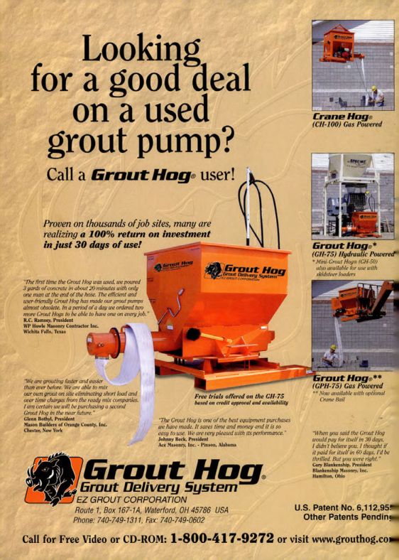"When you said the Grout Hog would pay for itself in 30 days, I didn't believe you. I thought if it paid for itself in 60 days, I'd be thrilled. But you were right." Gary Blankenship, President, Blankenship Masonry, Inc., Hamilton, Ohio