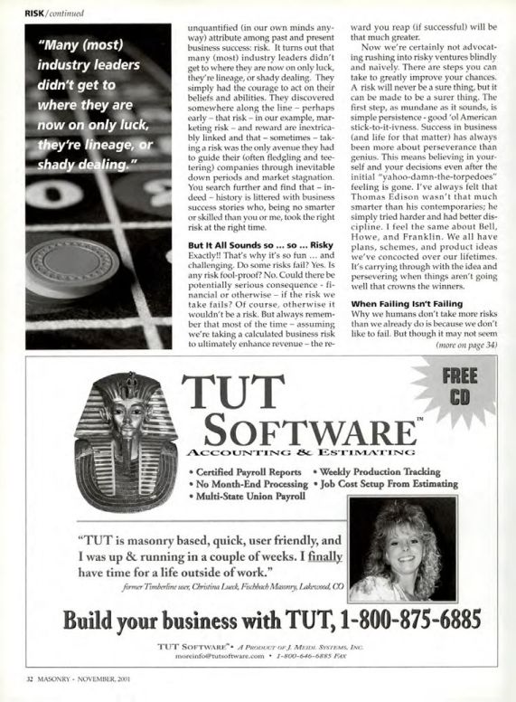 "TUT is masonry based, quick, user friendly, and I was up & running in a couple of weeks. I finally have time for a life outside of work." former Timberline user, Christina Lueck, Fischbach Masonry, Lakewood, CO